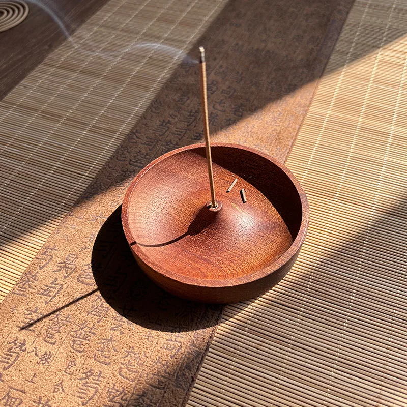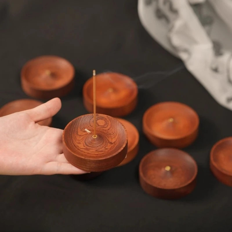Round Solid Wood Incense Stick Holder Sandalwood Agarwood Incense Burner Handmade Tea Ceremony Incense Base Tray Holder